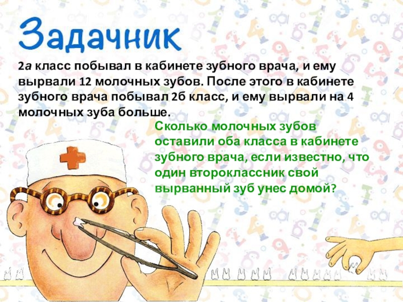 Сколько молочных зубов оставили оба класса в кабинете зубного врача, если известно, что один второклассник свой вырванный зуб унес домой?