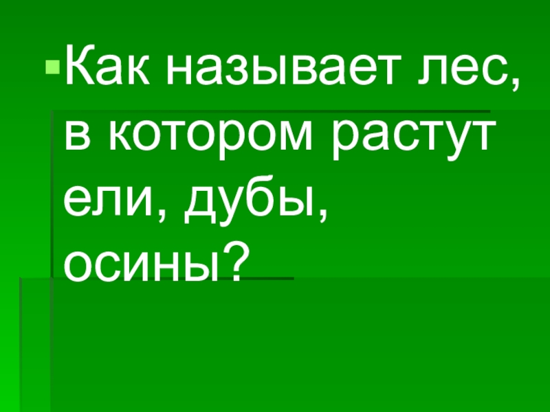 Слайд 8Как называется лес, в котором растут дубы и осины?