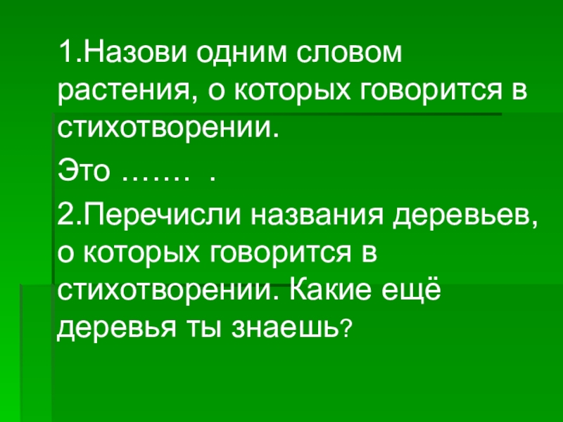 Слайд 51.Назови одним словом растения, о которых говорится в стихотворении.