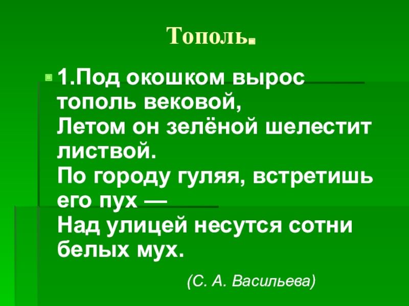 Слайд 32Тополь - это дерево, которое растёт в городе. Как мы о