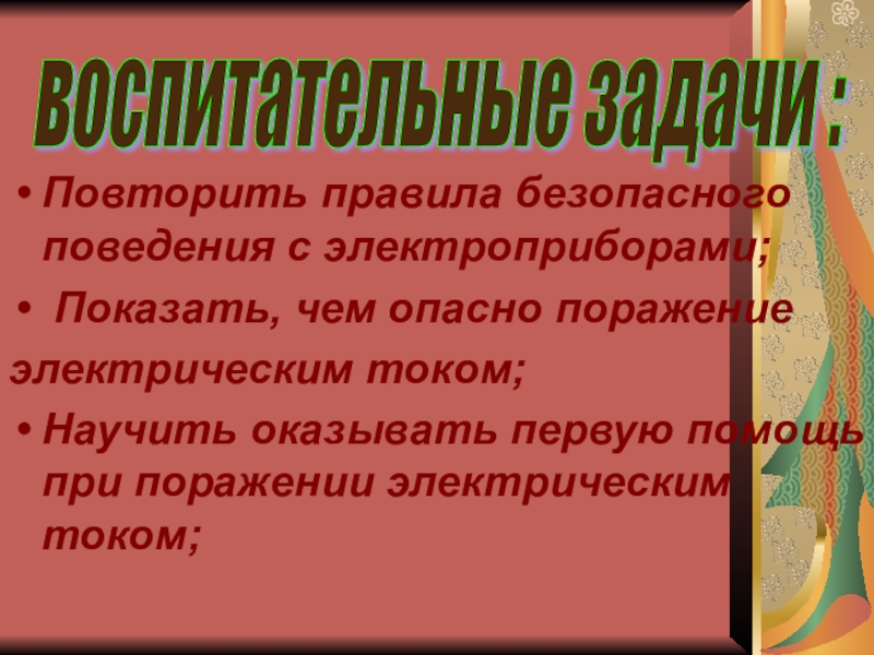 воспитательные задачи :