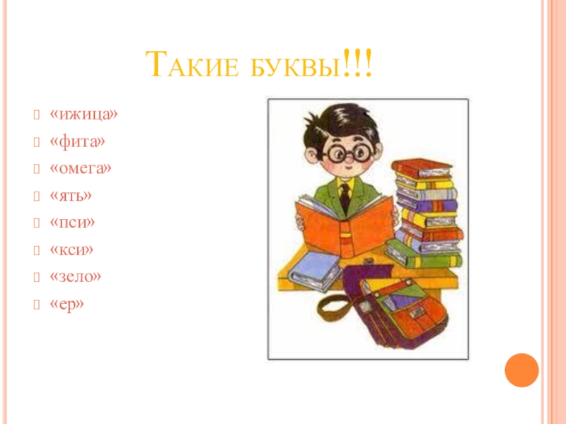 Такие буквы!!!«ижица»«фита»«омега»«ять»«пси»«кси»«зело»«ер»