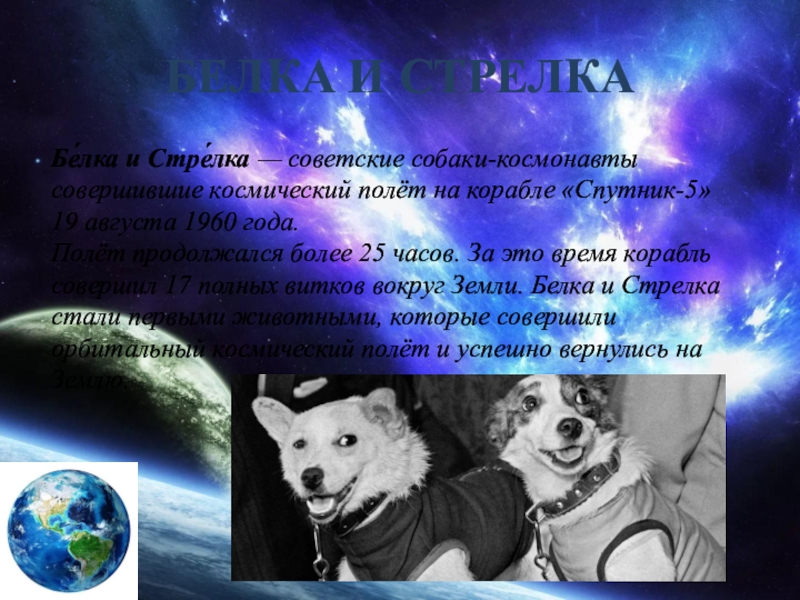 Бе́лка и Стре́лка — советские собаки-космонавты совершившие космический полёт на