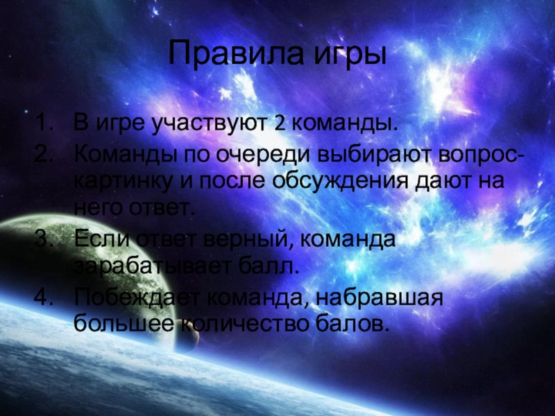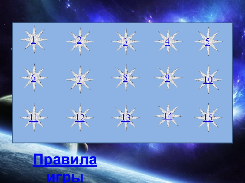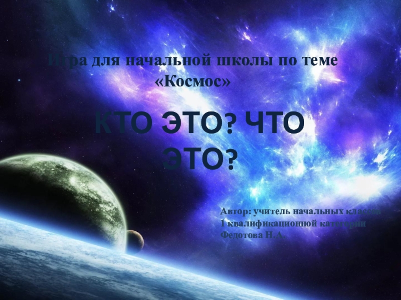 Слайд 1Игра для начальной школы по теме «Космос»