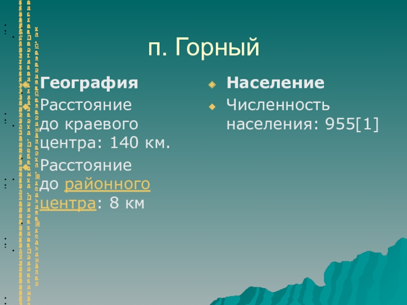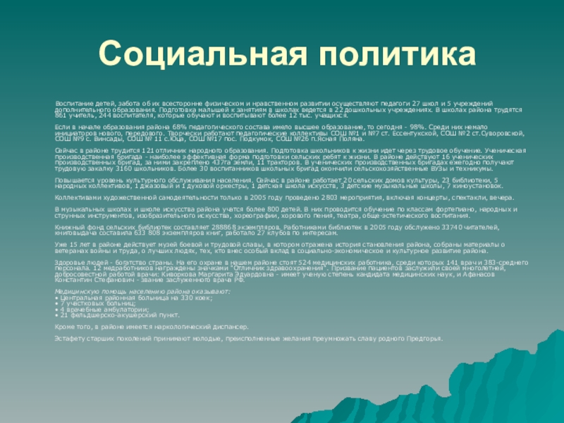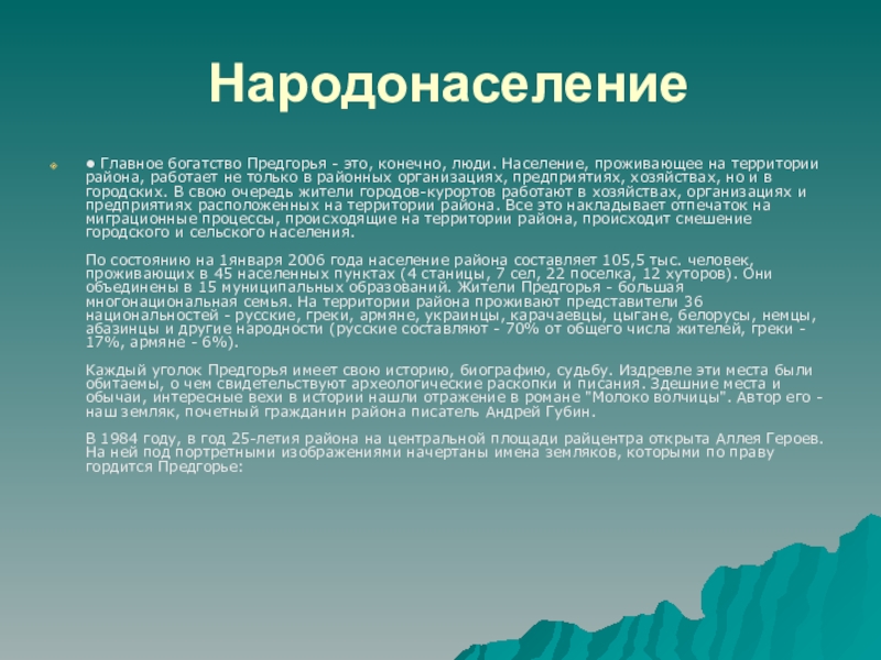 • Главное богатство Предгорья - это, конечно, люди. Население, проживающее на территории