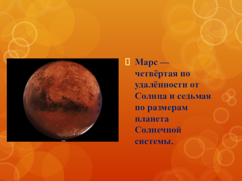 Слайд 2Марс — четвёртая по удалённости от Солнца и седьмая по размерам