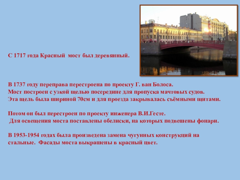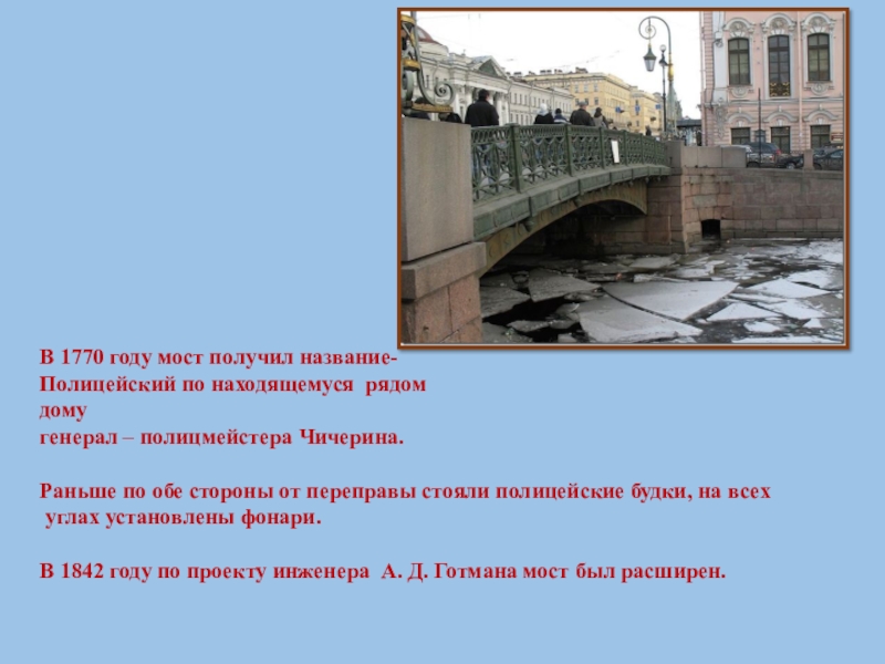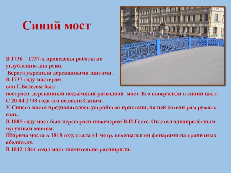 Мост перестраивался несколько раз. В 1816 году по проекту архитектора