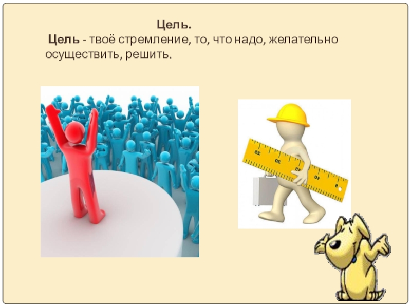 Цель.  Цель - твоё стремление, то, что надо, желательно осуществить, решить.