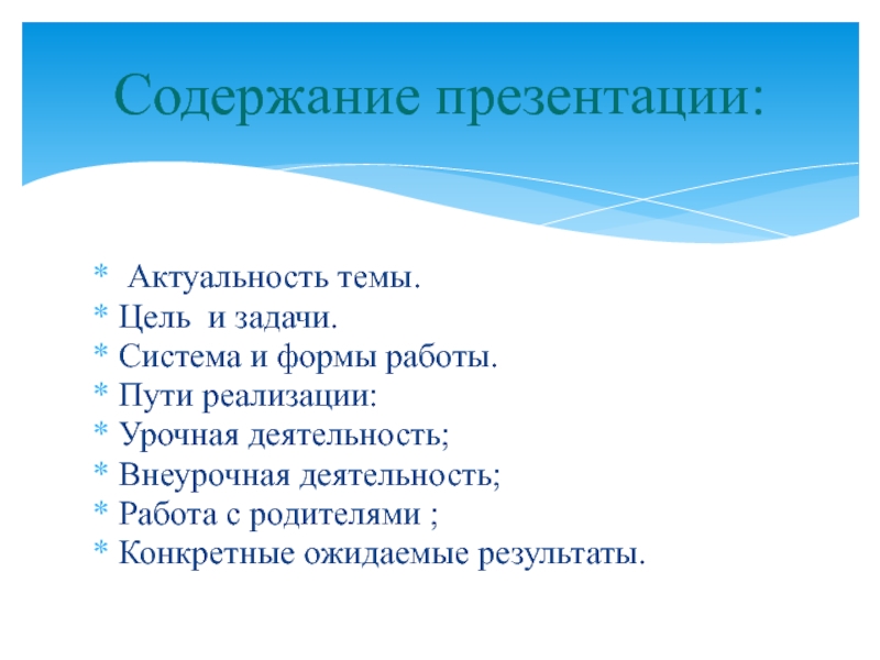 Содержание презентации: