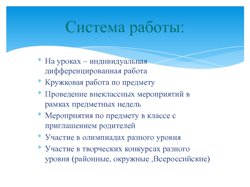 Система работы: