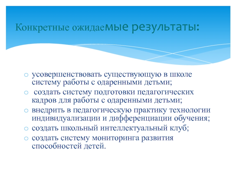 Конкретные ожидаемые результаты:
