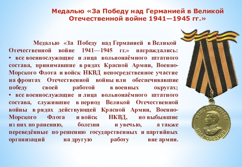 Медалью «За Победу над Германией в Великой Отечественной войне 1941—1945 гг.»