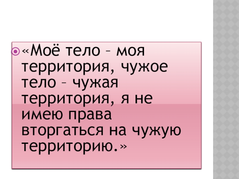 Слайд 3«Моё тело – моя территория, чужое тело – чужая территория, я