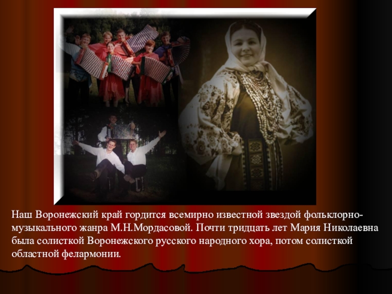 Всю войну Мария Николаевна провела во фронтовых бригадах. Имела за это боевые награды. В после военные годы к Мордасовой пришла всенародная слава, звание народной артистки СССР и героя социалистического труда. Вместе с мужем она ездила по деревням, собирала частушки, перерабатывала их.
