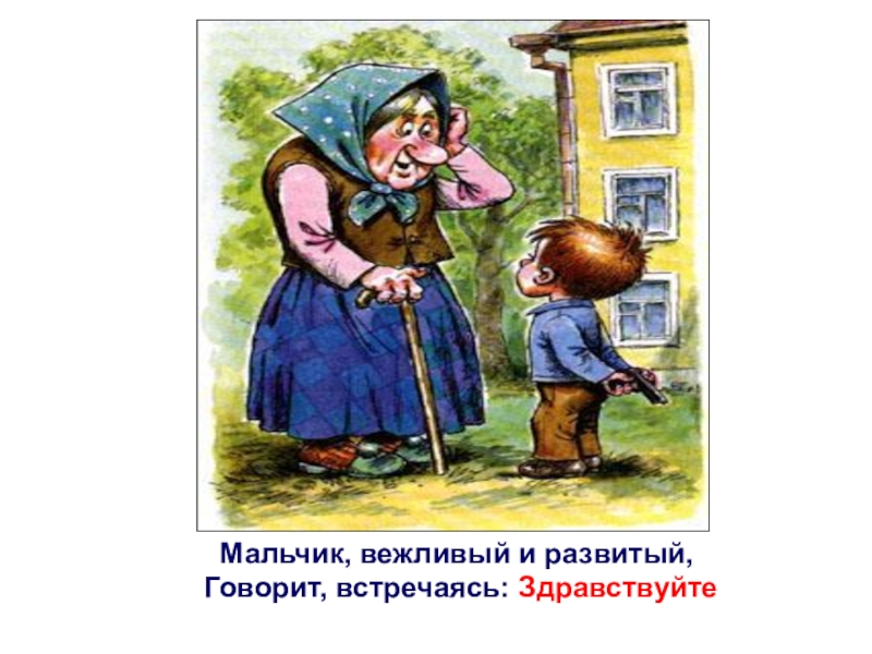 Слайд 20Мальчик, вежливый и развитый, Говорит, встречаясь: Здравствуйте