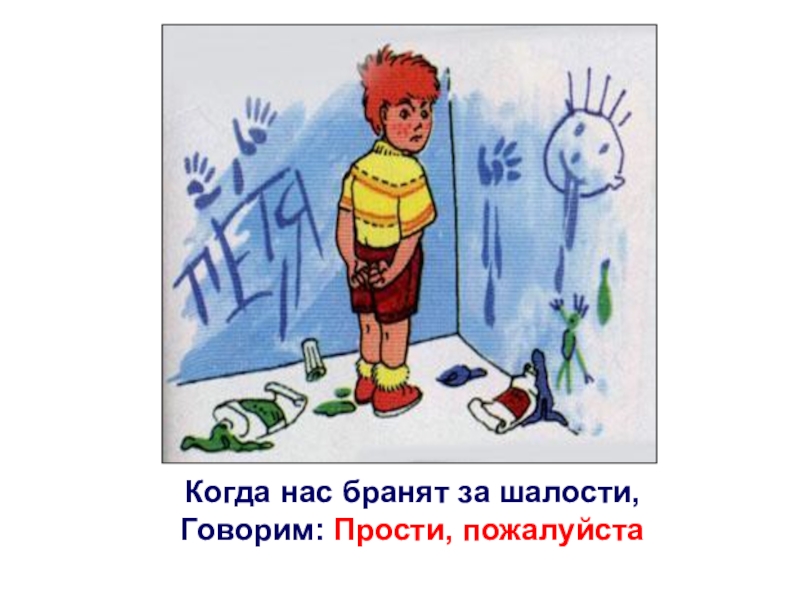 Слайд 21Когда нас бранят за шалости, Говорим: Прости, пожалуйста