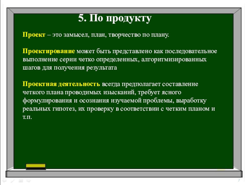 Проект («брошенный вперед») - это «организованный учителем и самостоятельно выполняемый детьми комплекс действий, завершающийся созданием продукта и его представлением