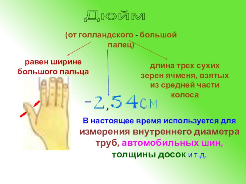 расстояние между концами вытянутых большого и указательного пальцев руки,