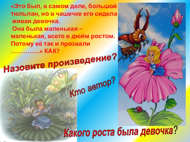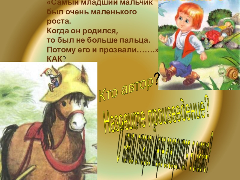 Кто автор произведения? Как называется произведение? Каков рост младенца?