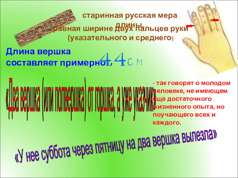 «Два вершка (или полвершка) от горшка, а уже указчик»