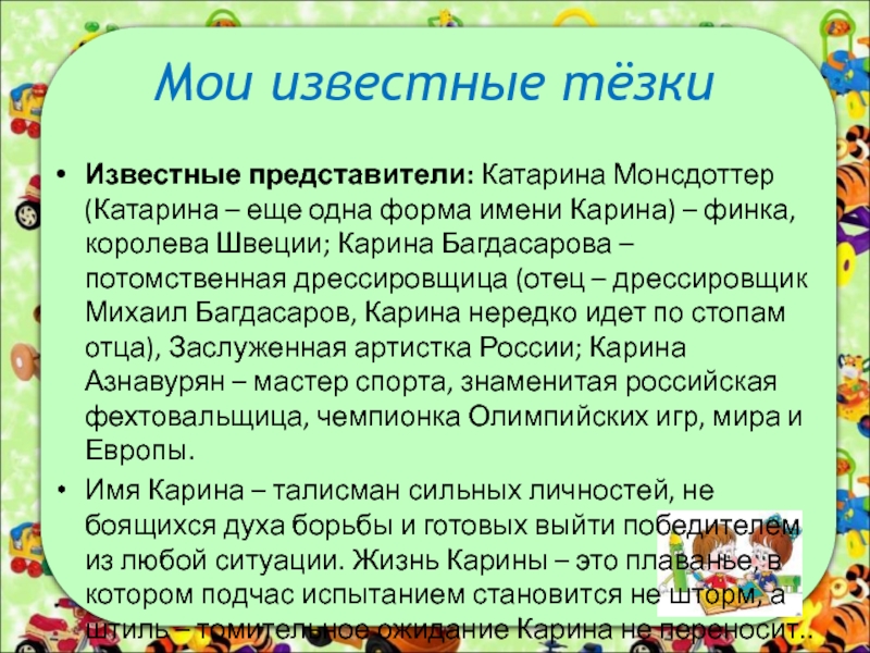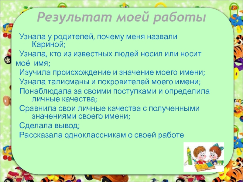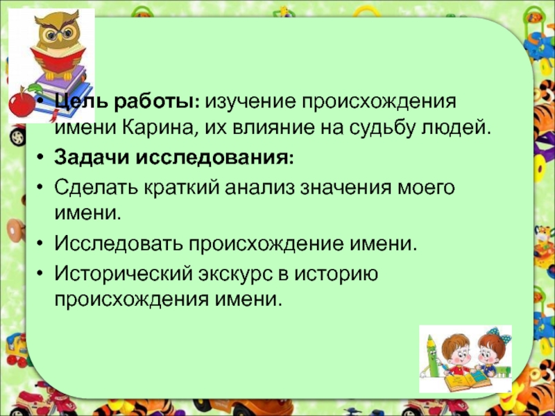 1. Расширить знания о значении своего имени и историю его происхождения.