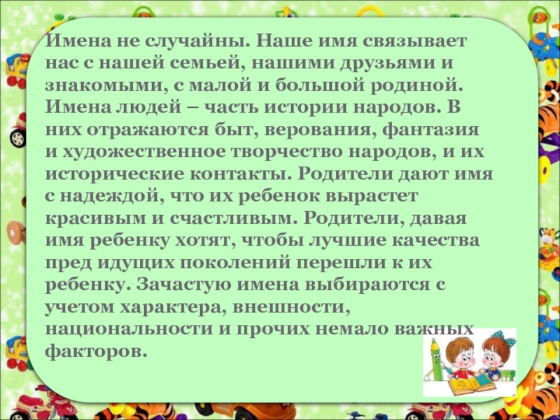 Слайд 9Имена не случайны. Наше имя связывает нас с нашей семьей, нашими