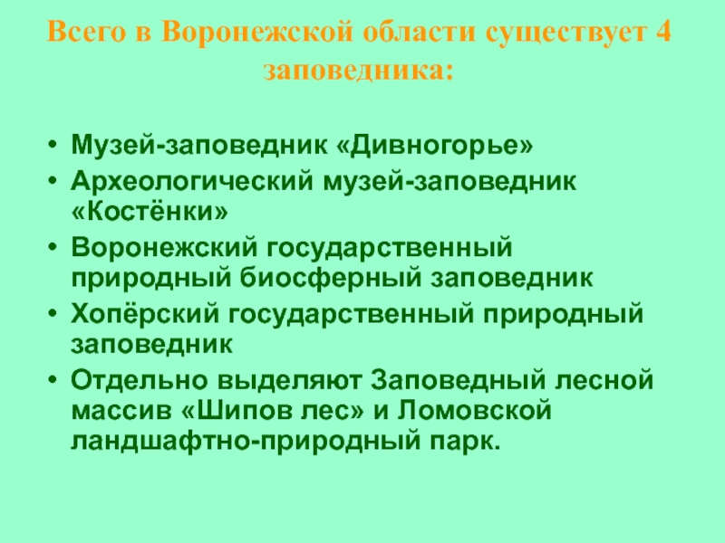 Слайд 4Всего в Воронежской области существует 4 заповедника: