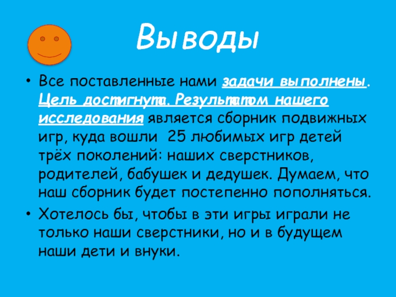 Выявить, в какие игры любят играть наши сверстники, и в какие игры играли мамы и папы, бабушки и дедушки;