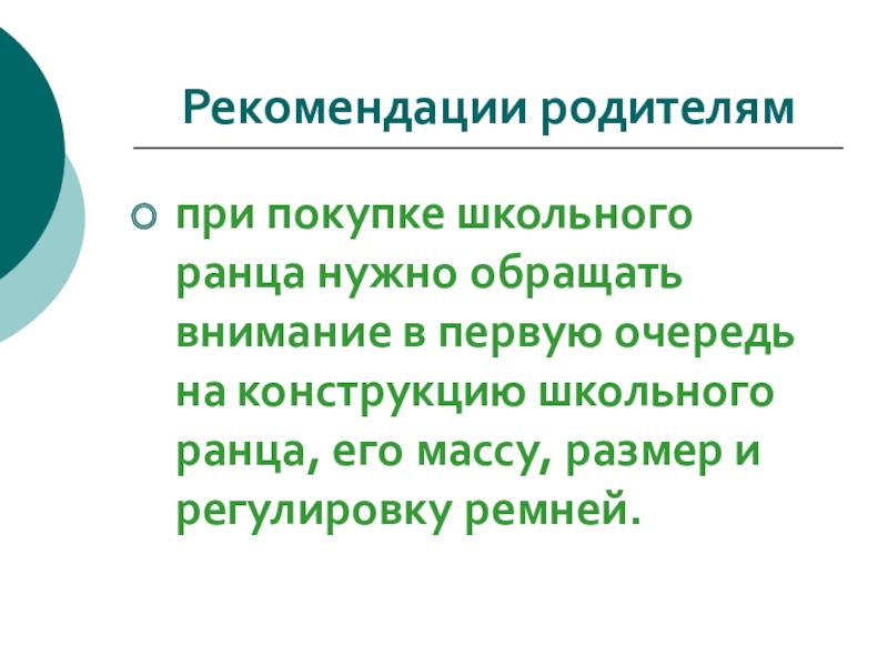Рекомендации родителямпри покупке школьного ранца нужно обращать внимание в первую очередь на конструкцию школьного ранца, его массу,