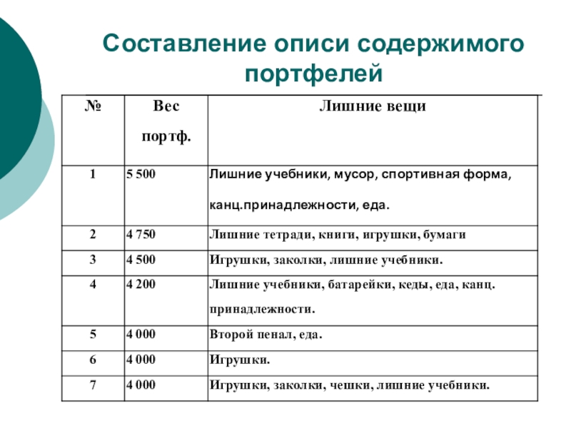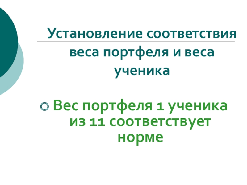Слайд 7Установление соответствия веса портфеля и веса ученика