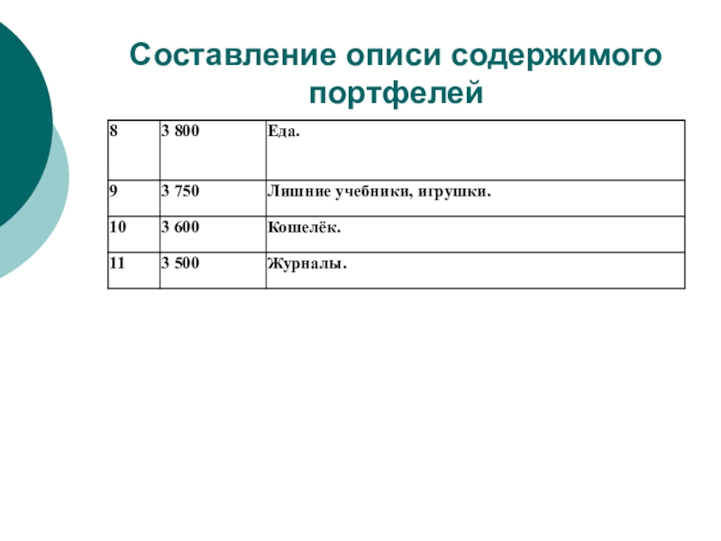 Слайд 6Составление описи содержимого портфелей