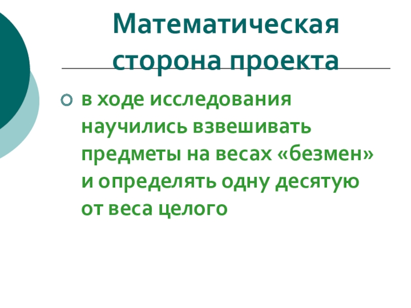 Слайд 13Математическая сторона проекта