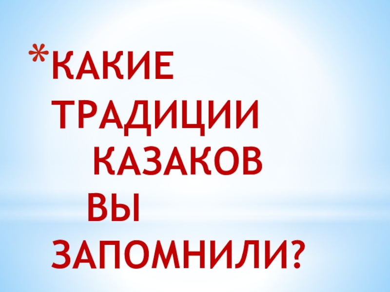 КАКИЕ       ТРАДИЦИИ    	  КАЗАКОВ