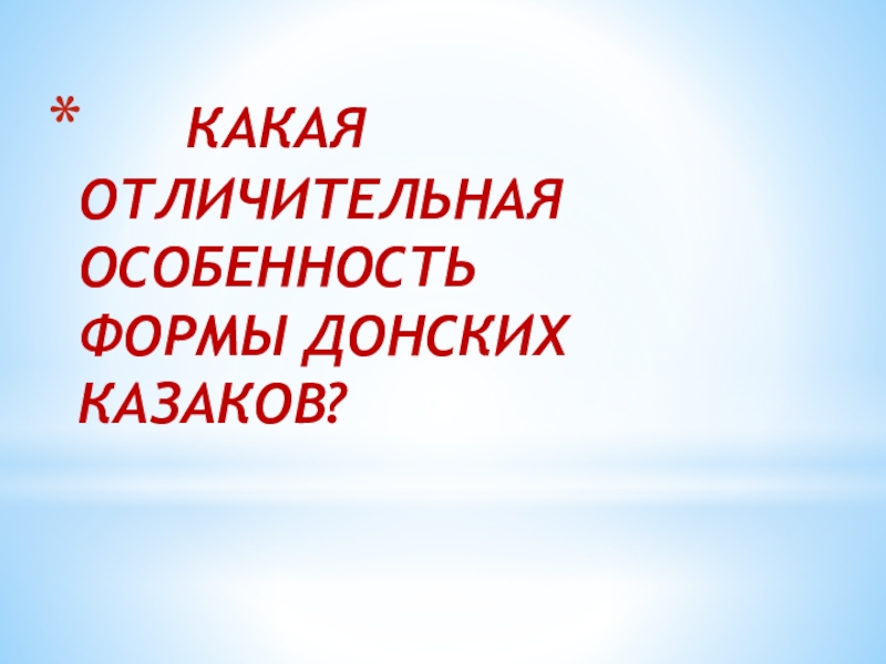 КАКАЯ   	ОТЛИЧИТЕЛЬНАЯ 		 ОСОБЕННОСТЬ   	ФОРМЫ ДОНСКИХ    		КАЗАКОВ?