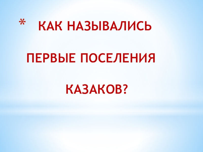 КАК НАЗЫВАЛИСЬ   ПЕРВЫЕ ПОСЕЛЕНИЯ        КАЗАКОВ?