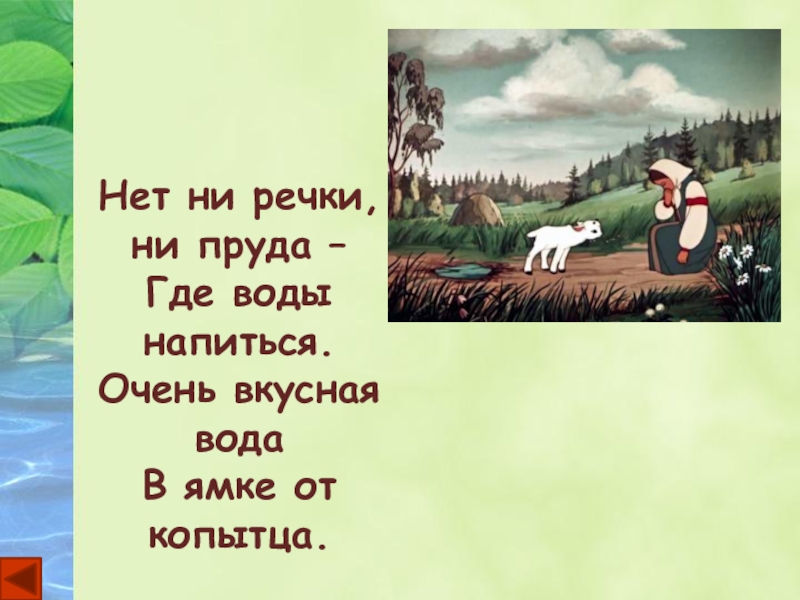 Слайд 13Нет ни речки, ни пруда – Где воды напиться. Очень вкусная вода