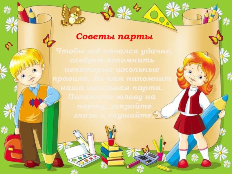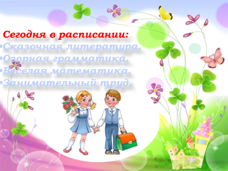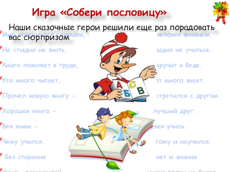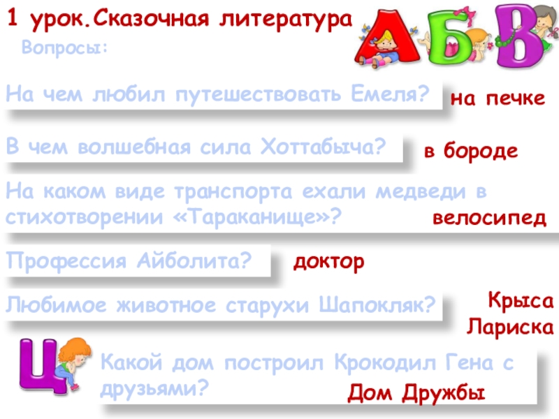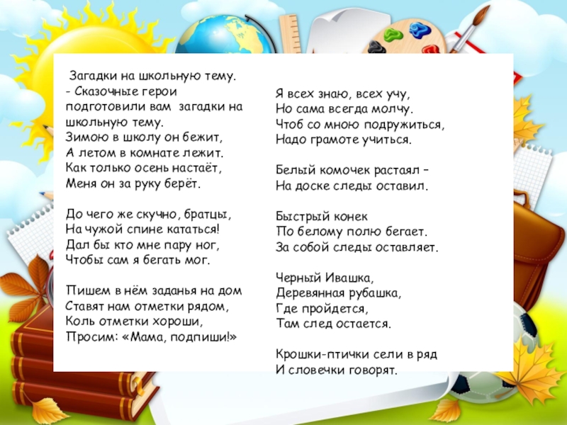- Сказочные герои подготовили вам загадки на школьную тему.