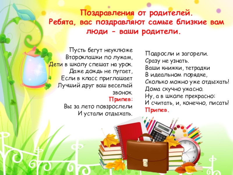 Ребята, вас поздравляют самые близкие вам люди - ваши родители.