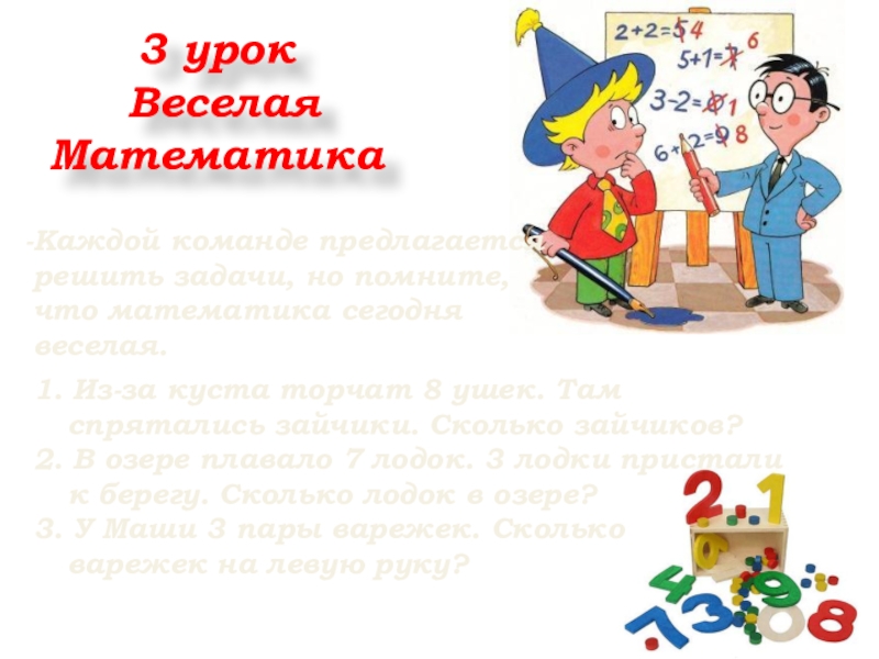 Каждой команде предлагается решить задачи, но помните, что математика сегодня веселая.
