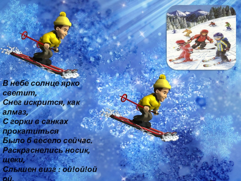 Лишь бы вниз, лишь бы в снег, Лишь бы съехать раньше всех!.