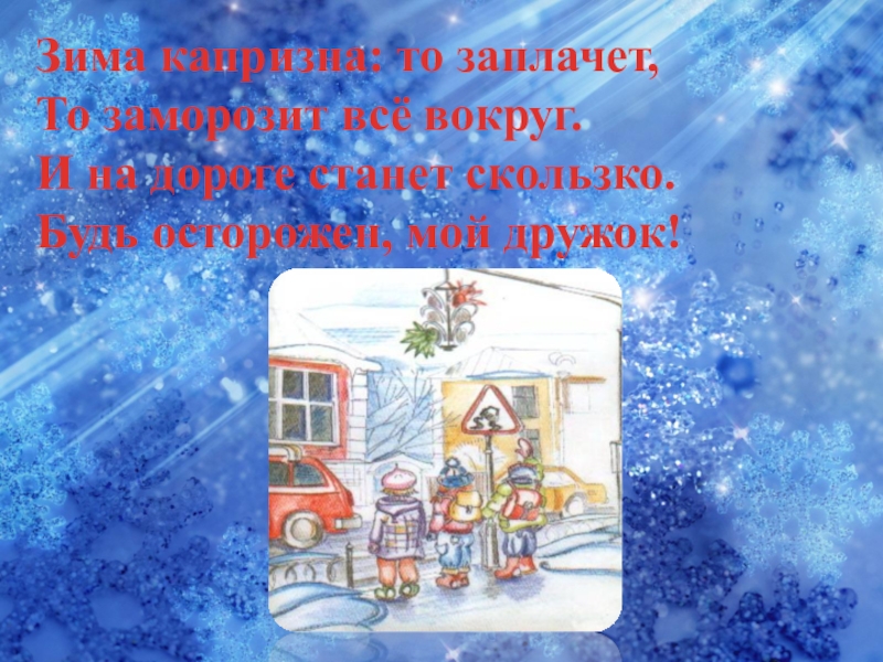 Слайд 30Зима капризна: то заплачет,
