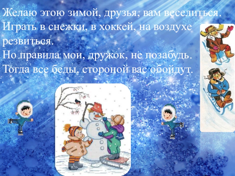 Слайд 33Желаю этою зимой, друзья, вам веселиться.