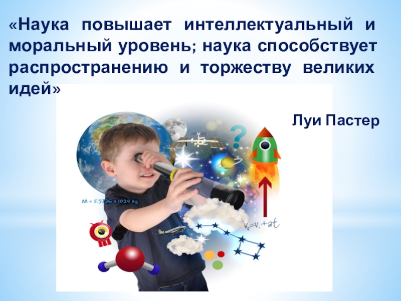 Слайд 8«Наука повышает интеллектуальный и моральный уровень; наука способствует распространению и торжеству