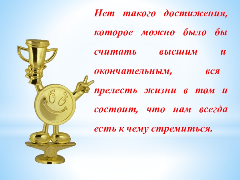 Слайд 28Нет такого достижения, которое можно было бы считать высшим и окончательным,