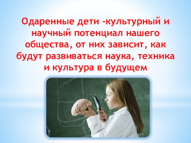 Слайд 2Одаренные дети -культурный и научный потенциал нашего общества, от них зависит,