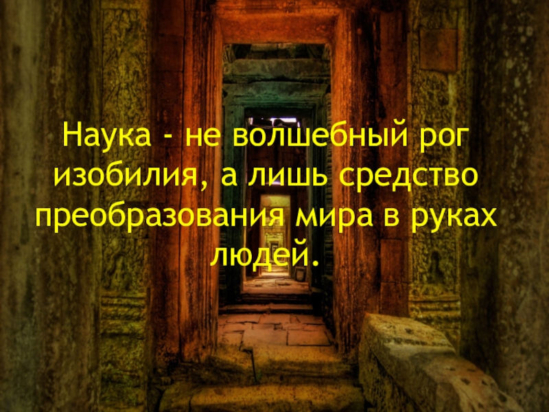 Слайд 13Наука - не волшебный рог изобилия, а лишь средство преобразования мира