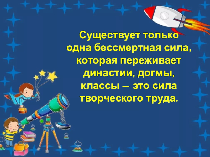 Слайд 3Существует только одна бессмертная сила, которая переживает династии, догмы, классы —
