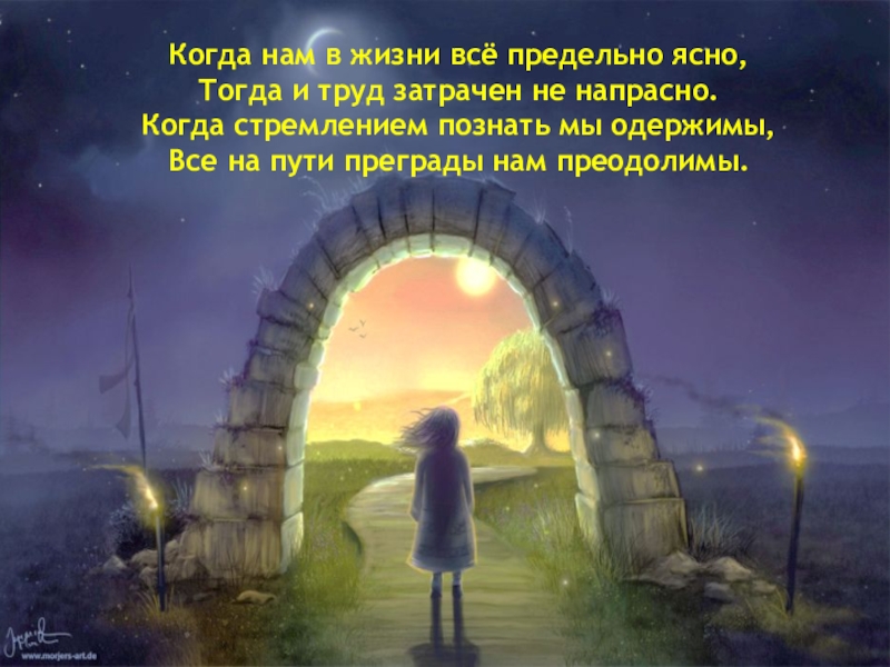 Не всякому легко по ним идти. Тому в страну познанья путь открыт,