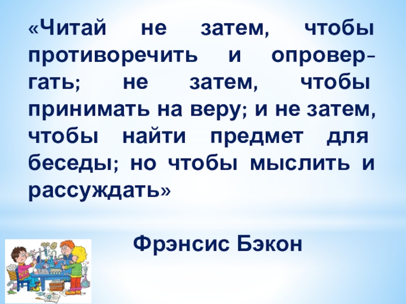 Слайд 14«Читай не затем, чтобы противоречить и опровер-гать; не затем, чтобы принимать