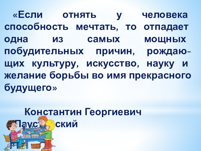 Слайд 24 «Если отнять у человека способность мечтать, то отпадает одна из